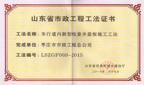 近日從山東省市政協(xié)會獲悉,我公司于2015年11月申報的“車行道內(nèi)新型檢查井蓋板施工工法”被山東省住房和城鄉(xiāng)建設(shè)廳批準(zhǔn)為省市政工程工法。