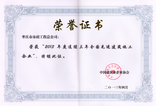 2013年度連續(xù)三年全國先進建筑施工企業(yè)