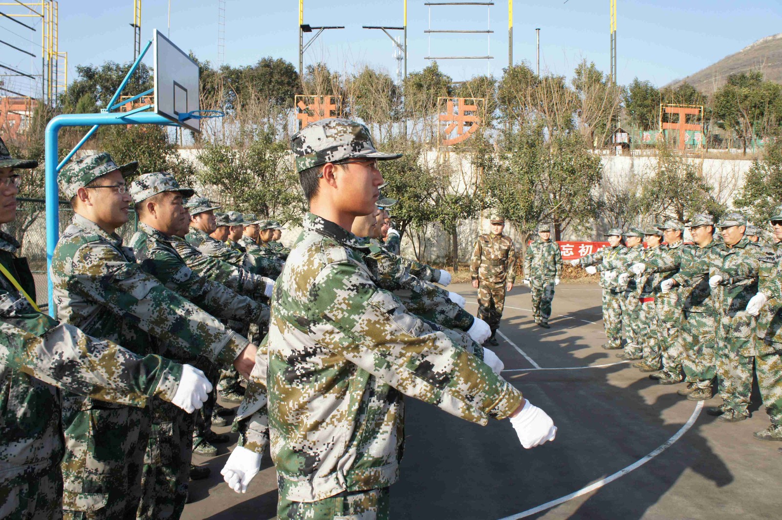 為保證公司各項工作不受影響,本次軍事拓展訓(xùn)練,仍然延續(xù)上一季的模式,將全體人員分為兩個批次組織訓(xùn)練(第一批:12月5日-9日;第二批:12月12日-16日)。目前,參加第一批次的全體人員,在錢繼政副總經(jīng)理的帶領(lǐng)下已于12月5日抵達(dá)訓(xùn)練營組織訓(xùn)練。經(jīng)過5日上午的分隊組合,參訓(xùn)的全部93人分別組成了英雄班、星火班、長征班和戰(zhàn)狼班共四個分隊。同時,英雄和星火兩隊組成了猛虎連,長征和戰(zhàn)狼隊組成了蒼狼連。在接下來的5天訓(xùn)練中,上述團(tuán)隊將接受包括隊列、轉(zhuǎn)法等內(nèi)容在內(nèi)的軍事訓(xùn)練和包括野外拉練項目在內(nèi)的拓展訓(xùn)練。