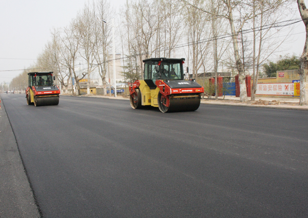 3月31日,在陽(yáng)春二月和煦的陽(yáng)光下,解放南路施工現(xiàn)場(chǎng)一片熱火朝天的景象。在施工圍擋區(qū),內(nèi)兩臺(tái)攤鋪機(jī)并駕齊驅(qū)、交錯(cuò)前進(jìn)。在攤鋪機(jī)身后兩臺(tái)雙鋼輪壓路機(jī)往來(lái)碾壓、有條不紊。下午,隨著解放南路(十里泉至嶧城界段)西側(cè)最后一板瀝青結(jié)構(gòu)層攤鋪碾壓工序的完成,解放南路道路維修工程全部結(jié)束,解放路道路維修工程階段性完成。